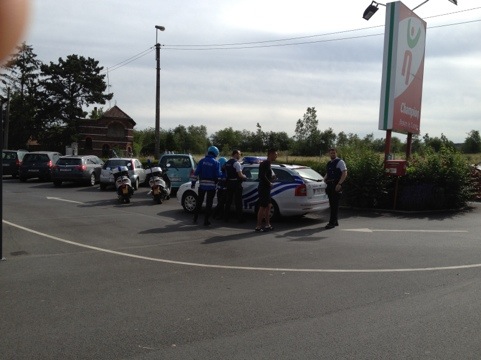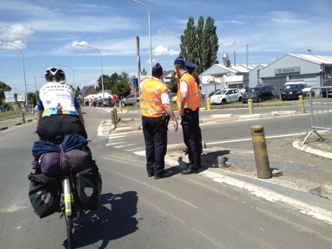 With 95km to go and a slight tailwind behind us rather than yesterday’s headwind we had a chance of making it to the finish at Tournai before the gendarmes closed the course.