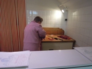 First stop after leaving Craig’s place was the market at Le Vigan, about a dozen km down the hill from Notre Dame. The Saturday market was in full swing, including the horse butcher who is only open on Saturdays. I was lucky enough to find him open and get the chance to see what all the fuss is about. I won’t keep you in suspense, it tastes exactly like beef. George has many more questions about the consumption of horse in France. He wants to know how many tonnes are consumed, why the horse butcher is separate to the normal butcher, what percentage of a horse the butcher would sell in a day, are horses bred specially for eating or do they just eat the old knackered ones? The list goes on. Despite reading many books on France, including ones that concentrate on food, he’s never seen any reference to horse eating. Perhaps there is some shame to it, or some consider it taboo or unseemly.