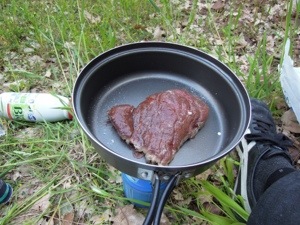 We found a snug tent site hidden amongst a stand of bamboo next to the river and I cooked up some tasty duck fillets them fried my potatoes in the fat. Yum.