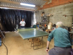Our first ping pong exposure was getting into Collette’s car for a rocket ship ride through back roads to Villeneuve sur Lot, where a local team were taking on a team from Paris. Having never seen a match before it was certainly interesting, including the obsessive wiping of the table by the players with their hands and towel breaks etc. The local team won easily, despite the Paris team including a former national champion of France.
