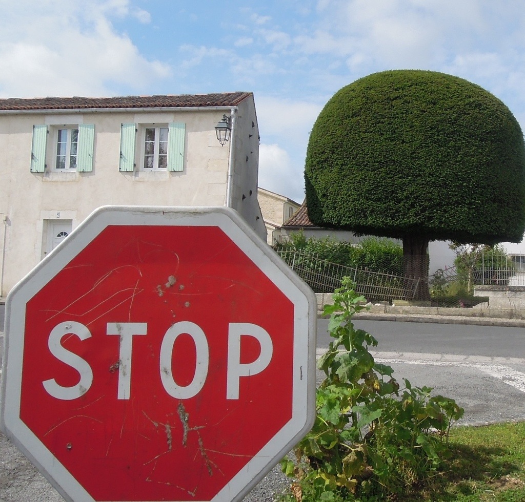 Last night’s camp site was a rest area at the edge of the village of Villedoux, and the two main advantages of this were the relative luxuries of a picnic table and a bin. You get pretty tired of squatting to cook, squatting to eat, squatting to shit when camping, and I can see why George lugs around the additional weight of a camp chair that allows him to sit in comfort.