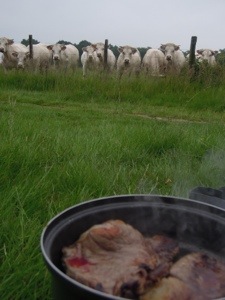 And apparently cows can detect the smell of one of their kin being fried up. At least that was what it looked like to me.