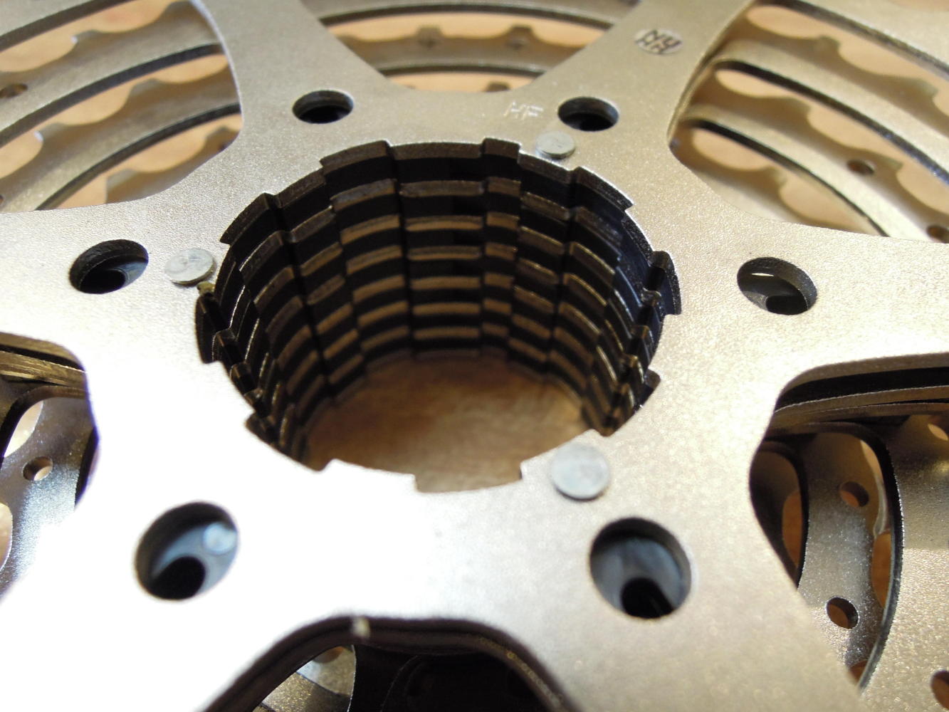 Note that the end sprockets with an integrated spacer come in two types, with and without a serrated surface. The serrated ones are designed to mesh with the lockring, but I used a non serrated 13 tooth one on my cassette because my Miche first position sprocket hasn’t arrived yet. I don’t think it will come loose.